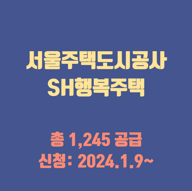 2024년 입주가 가능한 서울 주택도시공사 SH의 행복주택 공고가 발표되었습니다. 총 1,245호의 주택이 공급될 예정입니다. 2023.12.28일 자에 발표된 이 공고 속 행복주택은 당첨된다면 2024년 7월부터 입주가 가능하다고 합니다.