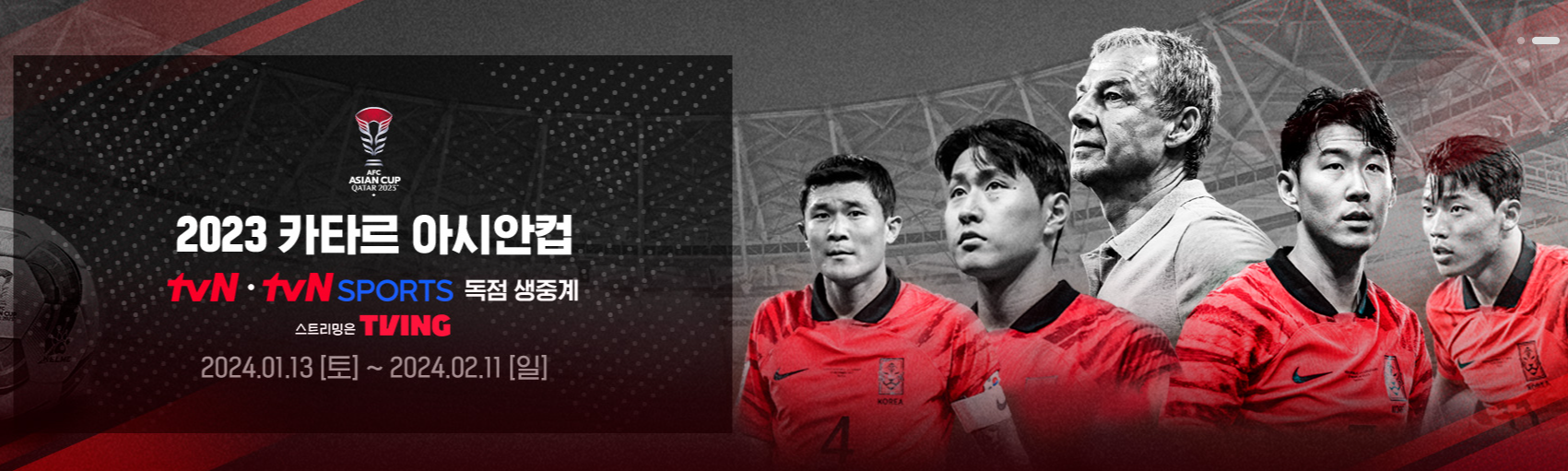 2023 카타르 아시안컵 TV 독점 생중계는 tvn에서 진행됩니다.
