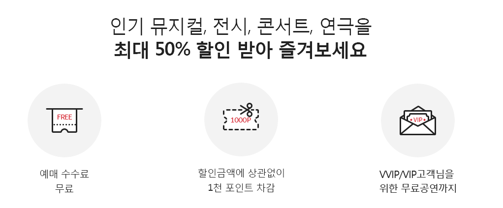 *주의사항 : 할인은 지정된 제휴 공연에만 적용되며, 할인율과 적용 가능한 좌석 등은 공연마다 상이합니다.