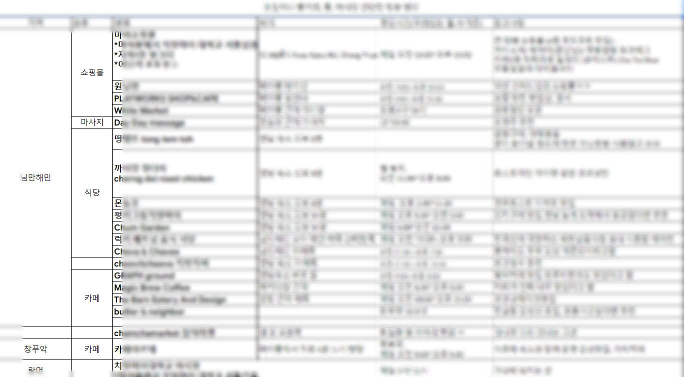 아래에 태국 치앙마이 일정 및 맛집 파일을 첨부해드리겠습니다